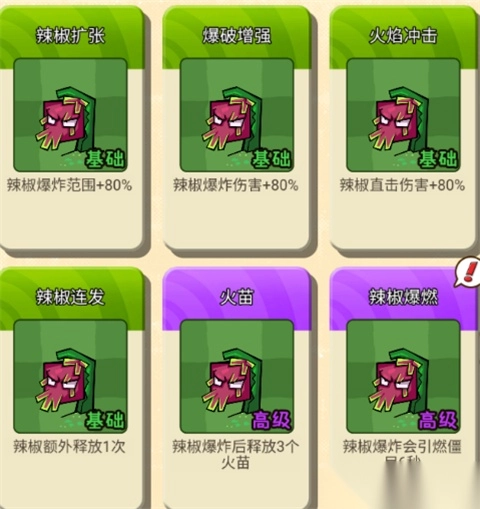发射辣椒,首个命中的僵尸会受到火属性伤害,同时引发爆炸,还伴有击退效果。