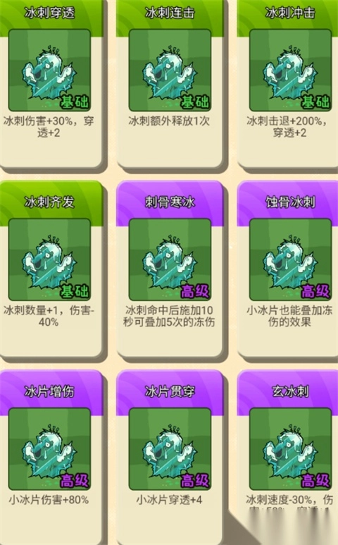 释放冰刺,冰刺可穿透多个僵尸,造成冰属性伤害,同时还会附带轻微的击退效果。
