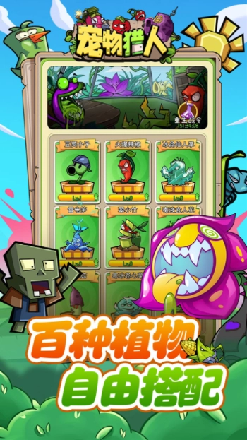 宠物猎人推出放置玩法,于合理区域添加植物,即可自动对僵尸展开攻击。