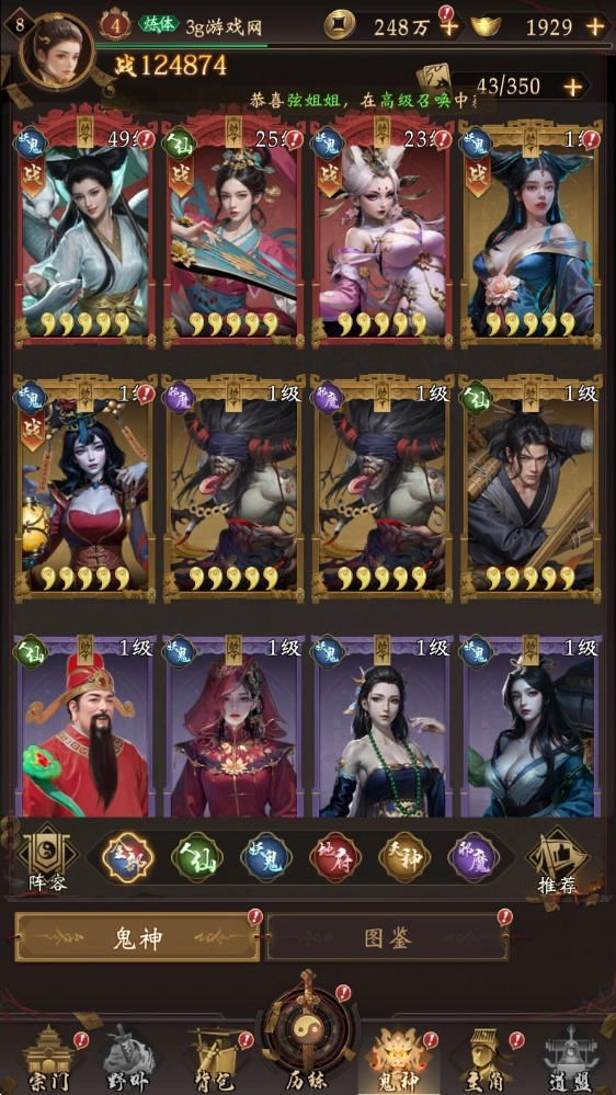5、成功招募新伙伴后,前往鬼神界面,在此界面便能查看自己所拥有的伙伴。