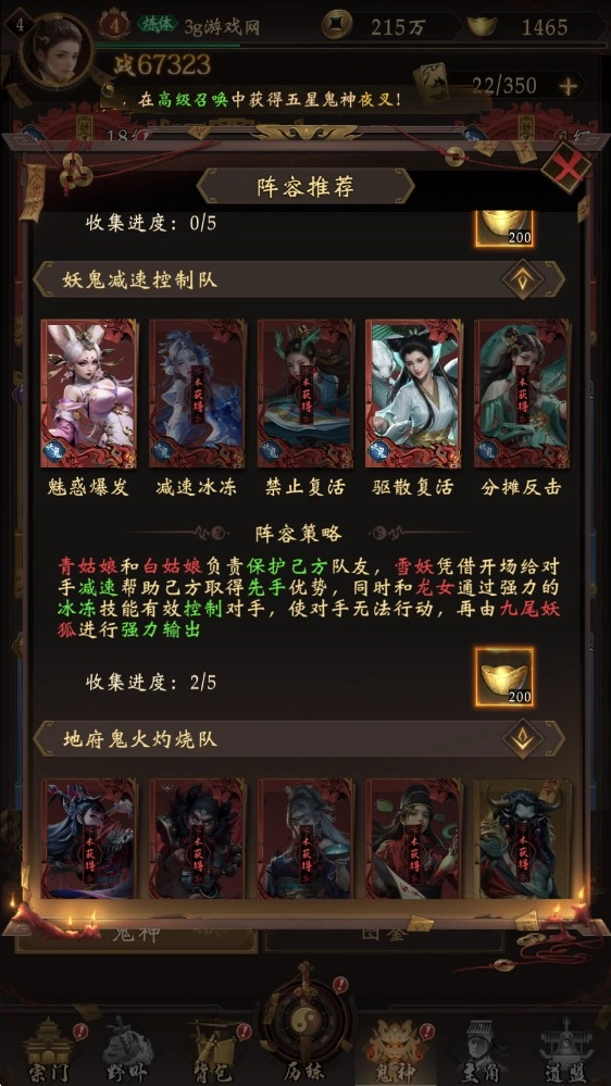 3、妖鬼减速控制阵容:九尾狐妖、雪妖、龙女、白姑娘以及青姑娘