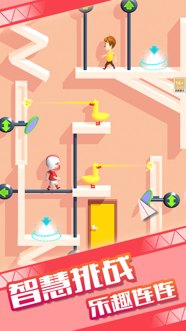 关键的操作在于,拖动位于场景中央的机关按钮,并向上滑动,通过这一动作来改变场景的构造,从而为角色创造出相遇的路径。