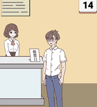 接着从男主口袋取出票,递给检票员。