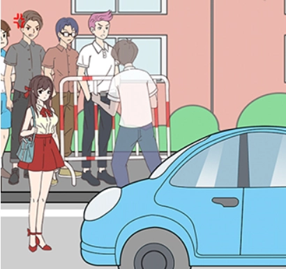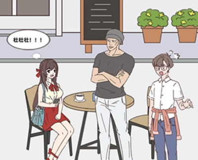 把衣服递给女生之后,点击她身后的壮硕男子。