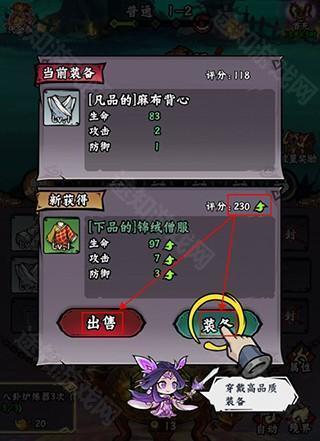 2、玩家可以根据装备的评分高低来选择出售和穿戴。