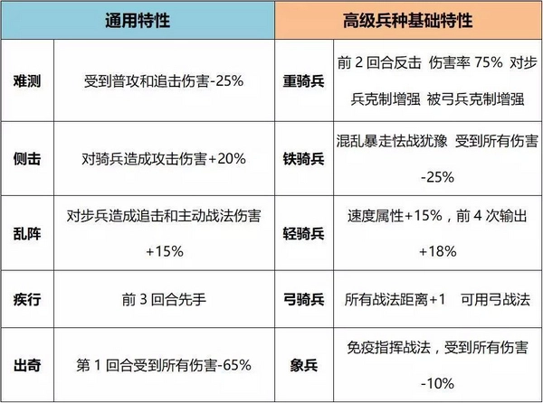 【疾行】在三大兵种之中,骑兵本身速度就是最快的,所以大部分骑兵对这一特性的需求不算高,仅郭嘉、汉吕布这类功能型武将,会存在一定需求。但在同兵种内战时,先手还是具备一定优势的。