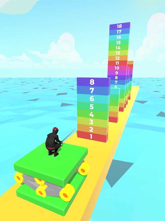 1、玩家需扮演忍者武士,手持武士刀朝着终点跳跃。