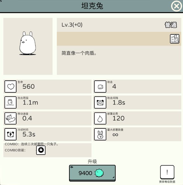 1、在前期打到大公鸡这个阶段时,你要将坦克兔升至5级,只要效率能保持在0.4以上,那么大公鸡这一关就能稳稳通过。