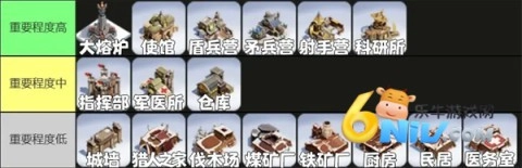 在游戏里,建筑划分成生产类、军事类以及功能类,当中军事类建筑的优先级处于首位,它对整个部队的实力有着直接影响。与此同时,核心建筑【大熔炉】的升级同样极为关键!