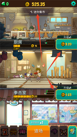 4、不断点击建造升级,打造更为宽敞优质的训练场地,提升学生的武艺水平,同时招募顶尖武术大师前来助力。