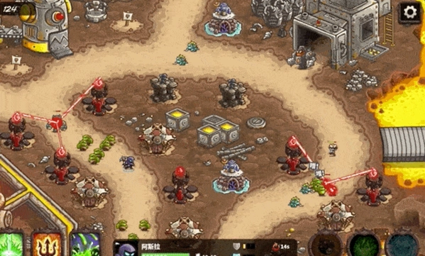 6. 炮塔是范围伤害,可以迅速清理数量极多,血量较低的杂兵,最好结合兵营使用。