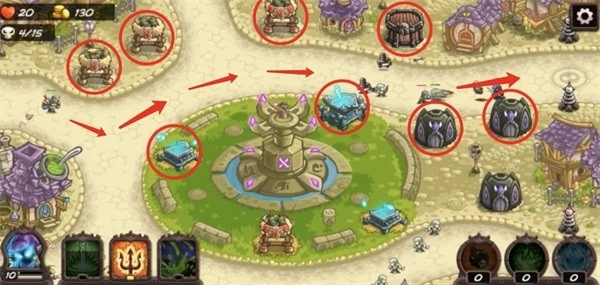 如这关,死灵墓后期出石像可有效分流敌军。 5. 一定要注意敌军属性,后期面对高护甲的敌军,魔法塔是一个不错的选择。