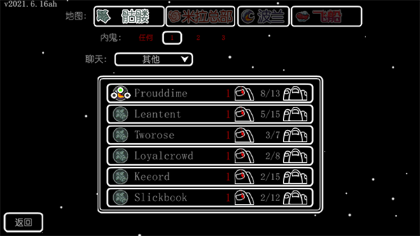 4. 关闭房门诱捕受害者。定制内容包括:可选择颜色和帽子。游戏设有众多选项,如添加更多冒名顶替者、增加更多任务等等!还能从主机列表里快速找到在线游戏。游戏内支持文字聊天,并且具备丰富的不和谐整合功能。