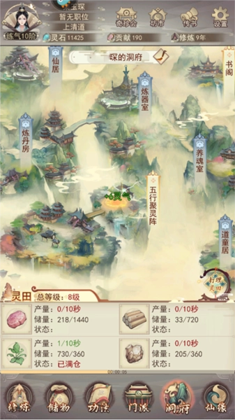 灵田可出产升级五行聚灵阵,灵药园,道童居等多个洞府建筑所需的木材,灵草和玄铁。