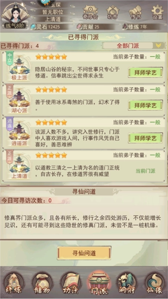 为什么要加入门派呢?玩家只有加入门派后,才可在藏经阁中学习功法和法术,提升自身实力其中玄功阁中可学习各种功法,玄术阁中可学习各种法术。