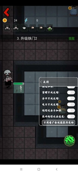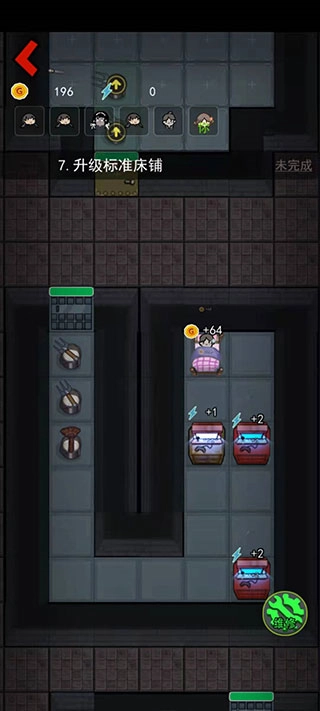 2、升级优先度:找到宿舍后,首先优先提升床的等级,并建造两个炮台。此时猛鬼尚未抵达,优先提升床铺等级能快速获取金币。随后提升门的等级,期间床铺等级可暂时搁置,着重提升门的等级,不然猛鬼极易突破。等升级到需要电力时,再前往商店购买游戏机,否则很容易被猛鬼突破防线。
