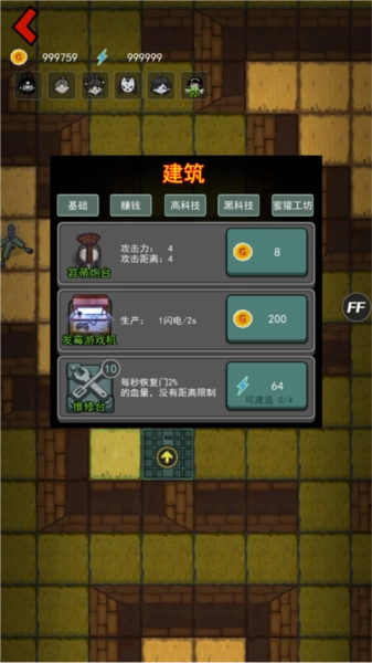 5、接着就能躺平赚钱啦,通过金币来升级并购置各类建筑,以此抵御红衣鬼。每种建筑都具备独特功能,玩家得合理搭配组合才行。