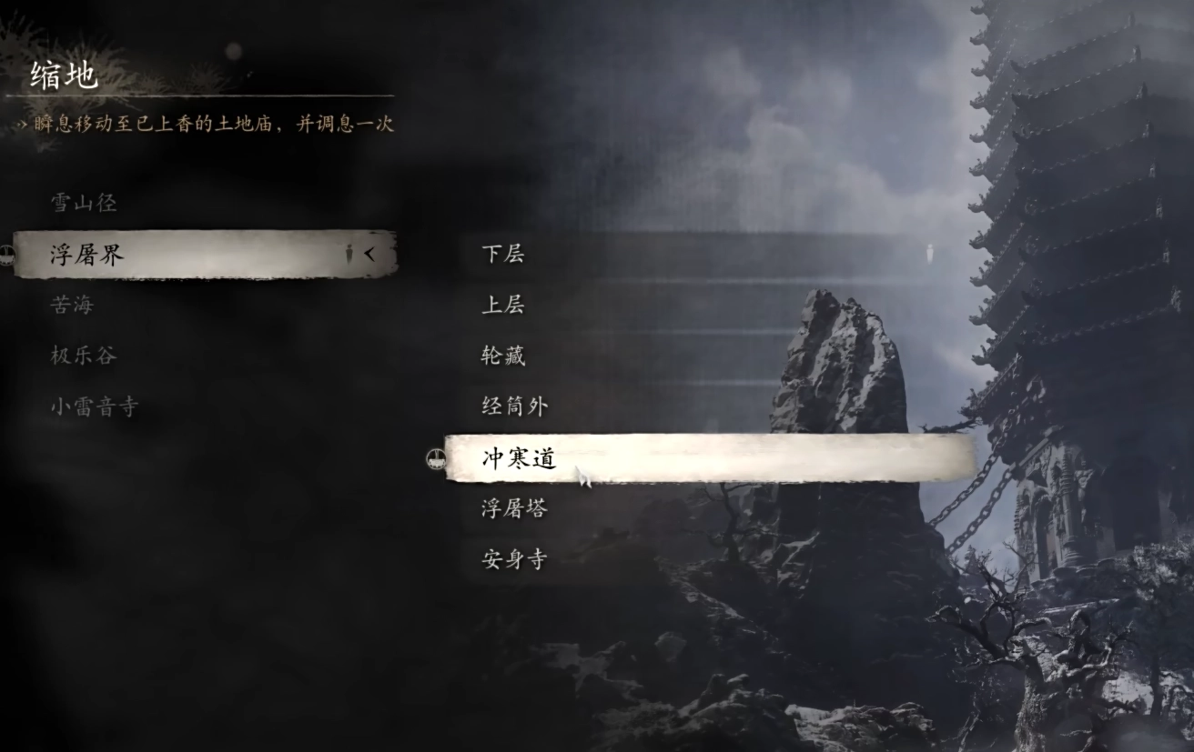 去往浮屠塔的方式极为简便,只需抵达“浮屠界 - 冲寒道”土地庙附近即可。