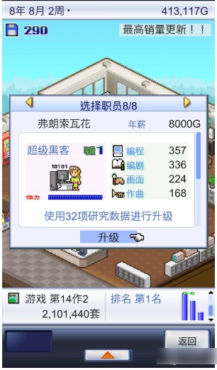 1、主要依靠对公司人员进行升级,升级很有可能会解锁不同的游戏类型,每个人物所解锁的游戏类型也各有差异。不过,若玩家在一周目时通过某个人物解锁了相关游戏类型之后。