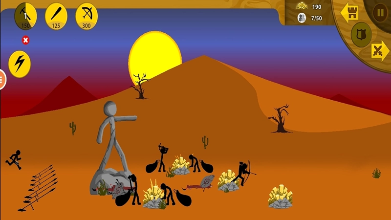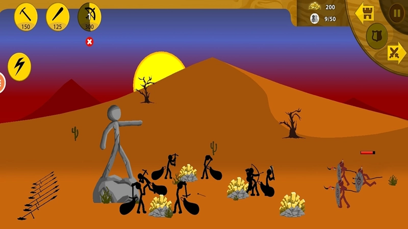 3、可供训练的火柴人士兵种类多样,每种士兵的作战方式独具特色,且各有优缺点。玩家需依据实际战况,组建适宜的阵容。