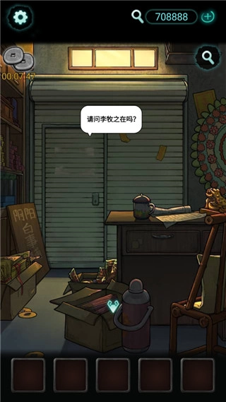 继续往左边走,来到堆放旧衣物的杂物间,找到货架上层左侧的箱子并点击,等箱子掉落之后,就可以拾取里面的锤子了。