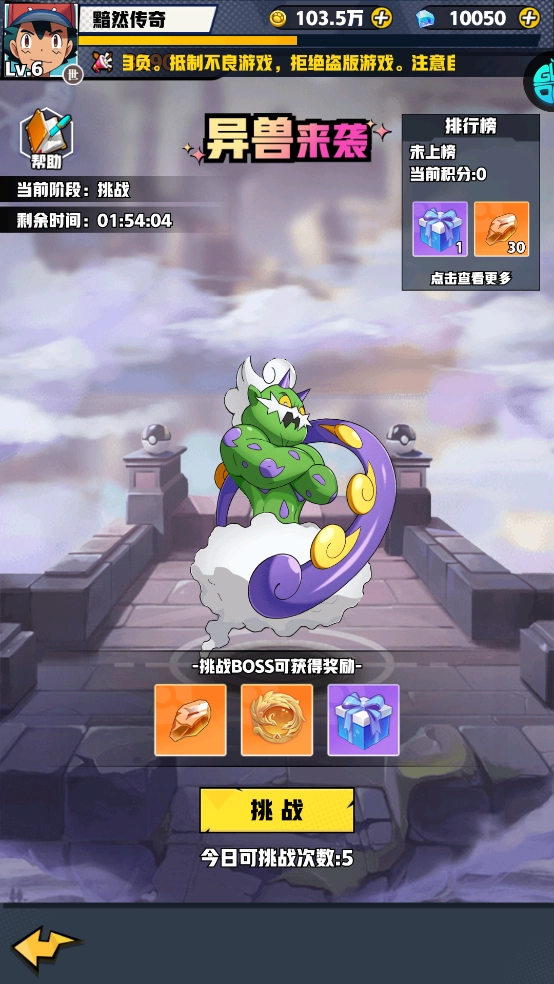每天傍晚六点到六点半会进入神兽出现的挑战环节。