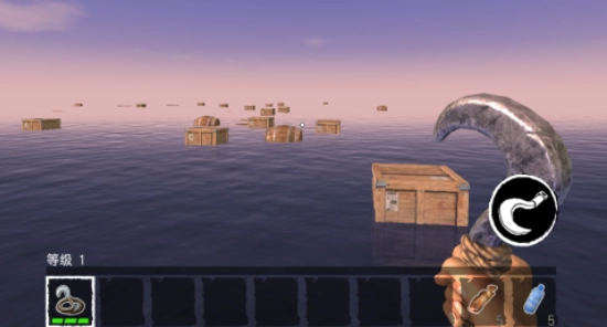 玩家得用手里的钩锁去勾取海洋里的各类资源,这样才能扩建木筏,让自己有更大的活动区域。