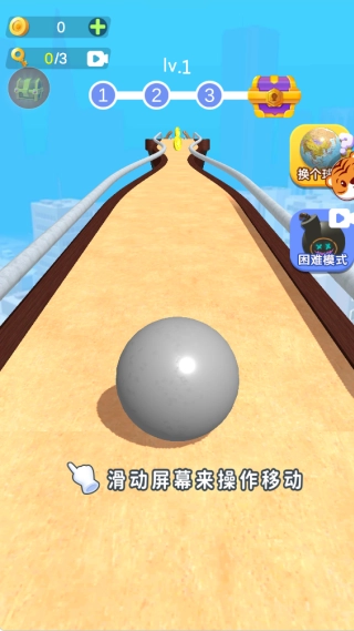 进入游戏后,你可以选择普通模式或困难模式,点击屏幕就能开启球球跑酷的挑战。