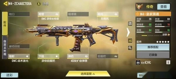 这里要推荐给战士们的M4配件搭配思路和ICR是一样的,选择JPI轻型一体消音枪管、无枪托、OWC战术激光、40发扩容弹匣以及颗粒握把皮,这样能提升M4的机动性与射程。
