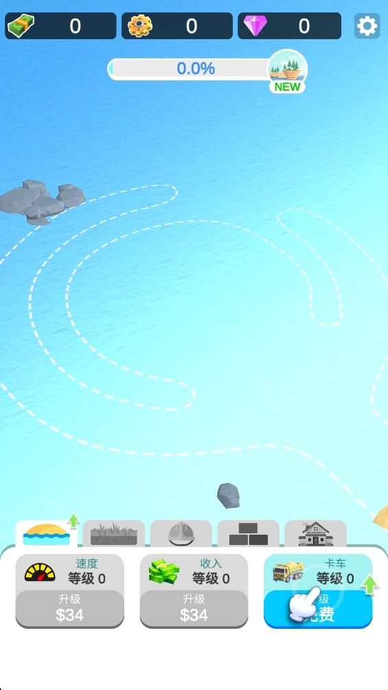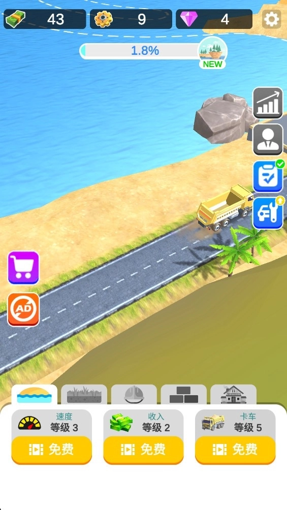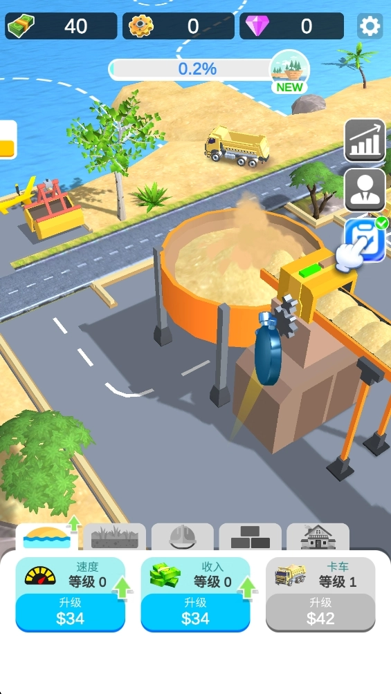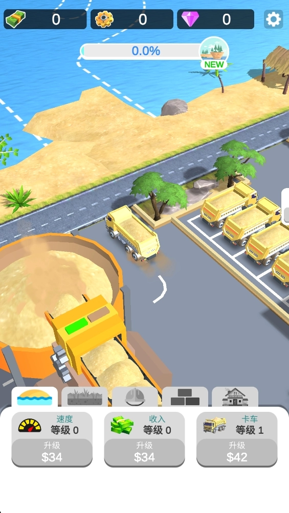 卡车会自动将沙子运到空白区域进行岛屿建造。