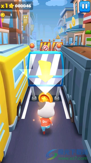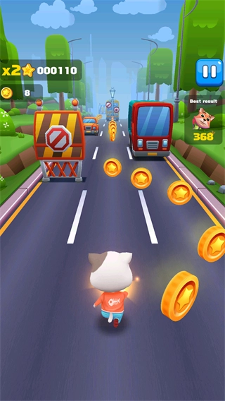 你需要操控角色在道路上奔跑,过程中要避开【禁止标识路障】和往来车辆,还要收集路上散落的【金币】,收集到的金币总数会显示在屏幕左上角。