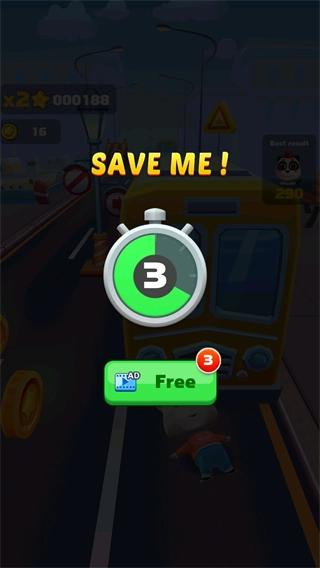当碰撞障碍触发【SAVE-ME!】提示时,你可以选择等待3秒倒计时结束,也能通过相应方式复活以继续挑战。