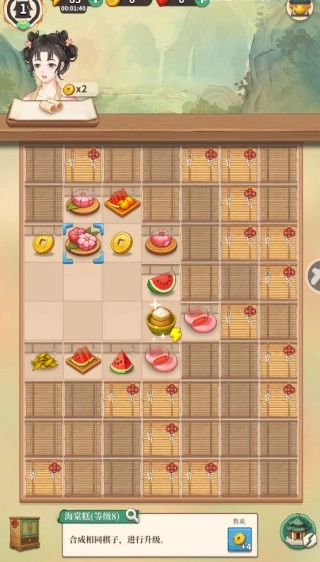 2、点击移动进行合成以升级其他食物,点击米饭可生成其他物品,持续进行合成升级操作。