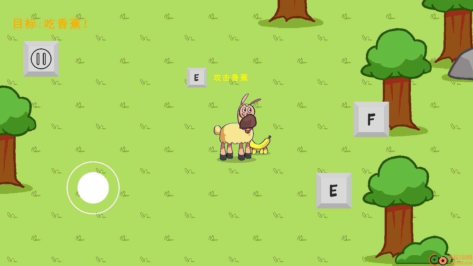 9、在游戏地图里找到对应的石头道具,用它攻击香蕉角色就能开启吃香蕉的环节