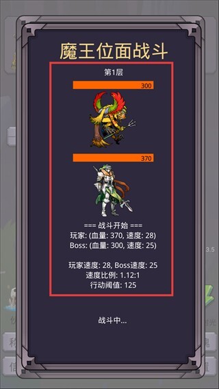 3、在【魔王位面战斗】第1层,要留意玩家和Boss之间的速度对比,保证自己的速度处于更高水平,以此抢占先手优势,从而提高战斗的胜率。