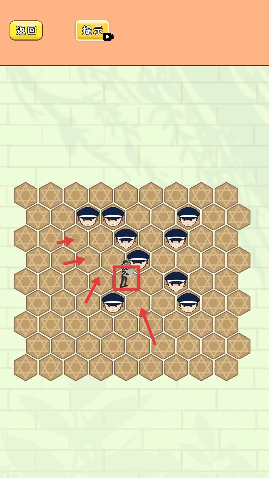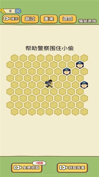 2. 观察关卡:在分布着小偷与警察的六边形格子里,剖析当前局势,规划围捕路线,逐步缩小小偷的活动范围。