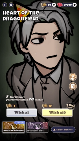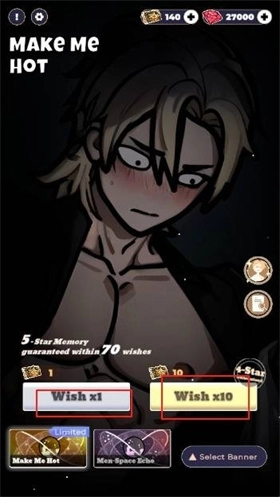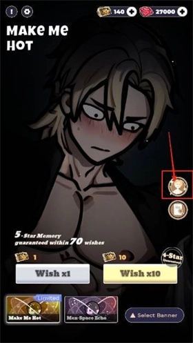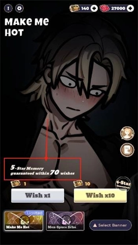 1、进入游戏后,能看到抽卡界面和恋与深空的基本一致,这里设定的是70抽可以触发五星保底机制。