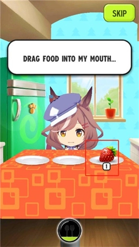 3、走进厨房,点击盘子里的草莓,把它拖过去喂给哈基米。