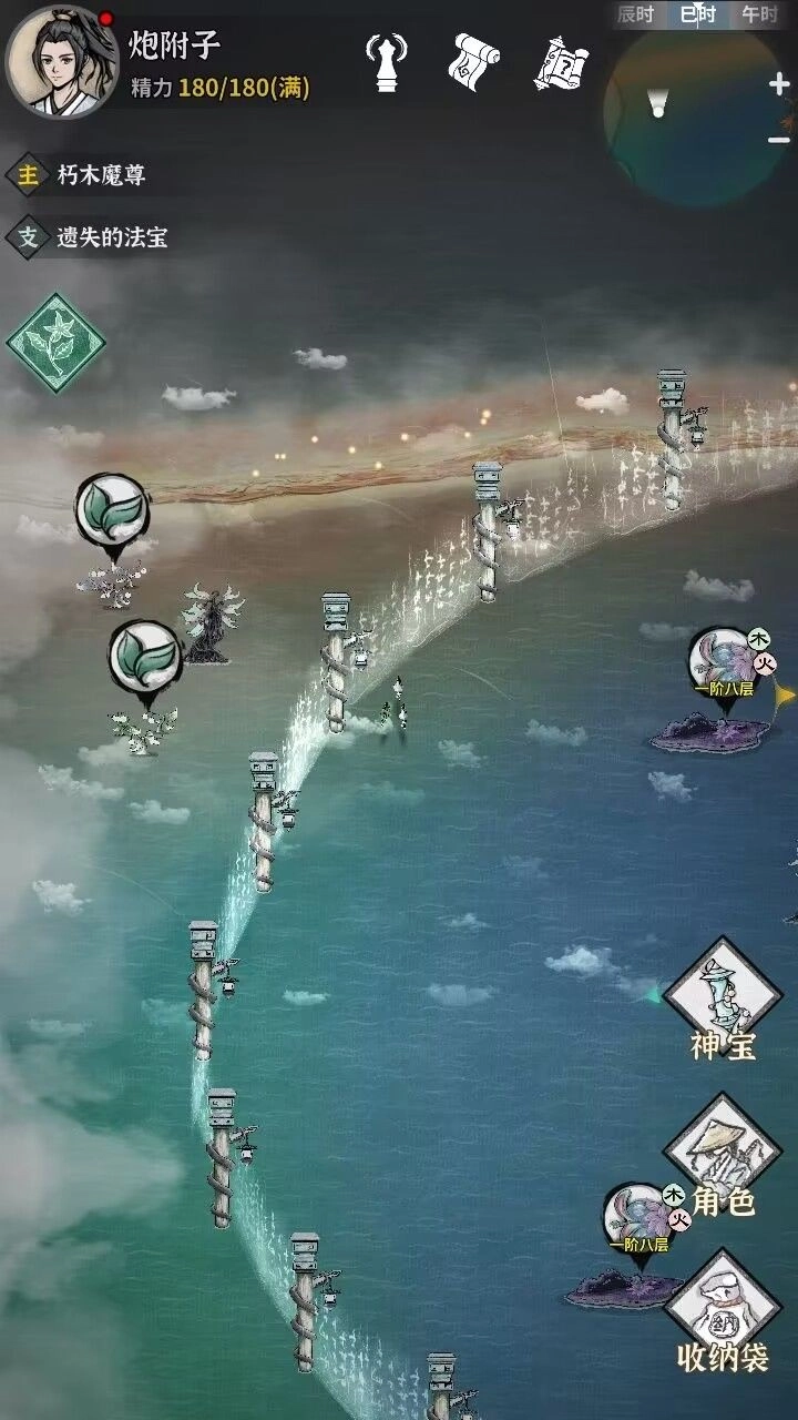 3. 推进剧情到白塔镇地图后,建议先把全图的资源都收集一遍。首先去激活各个传送台,方便后续移动;途中遇到的汐灵树也可以顺手处理掉,能获得灵气奖励,而且目前地图上的这类树都能轻松打过。另外,记得安排对应属性的角色去驻守汐灵树,这样挂机时能额外获取更多灵气(如果暂时没有水属性角色,可用师弟来替代驻守)。