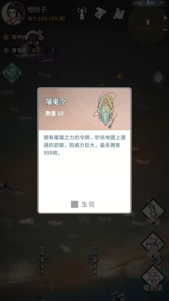 2. 若遇长老赠予屠魔令,可点击取消其生效状态。这样能防止在地图中误碰怪物时被直接秒杀(若不慎碰到怪物,可点击撤退,此操作不消耗体力)