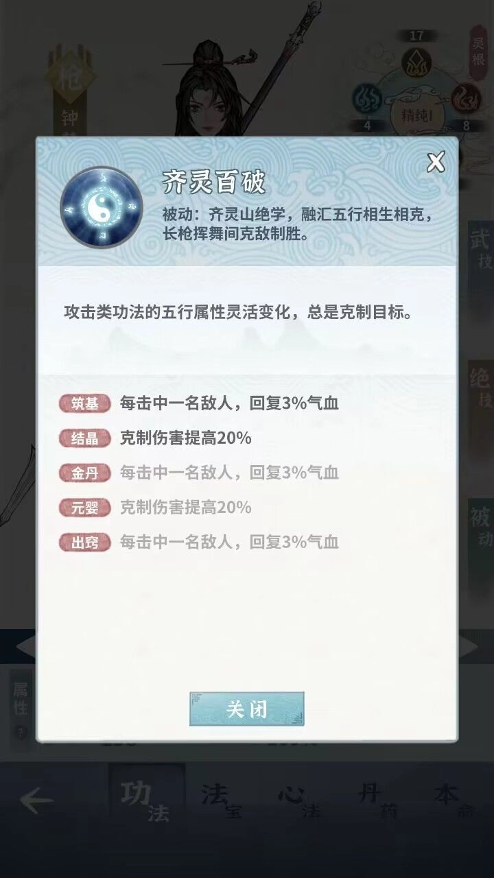 当学到两门心法并将它们提升到十重时,锁妖塔基本就能快速通关了。不过心法升级会消耗大量灵石和修为,差不多每天的精力都得用来转化为修为才行(第十重总共需要16万修为和对应的灵石)。另外要注意,师姐的心法金鼎功里,金系护盾能提升基础伤害,记得把装备词条换成金系护盾相关的(1命效果是开局直接释放技能叠加护盾)。