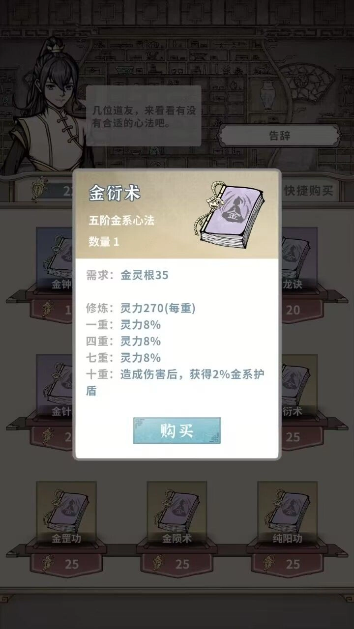 2. 可以省下用于购买金灵果的令牌,转而用这些令牌购买心法(前提是金灵根需达到35,否则不满足学习金衍术的条件)