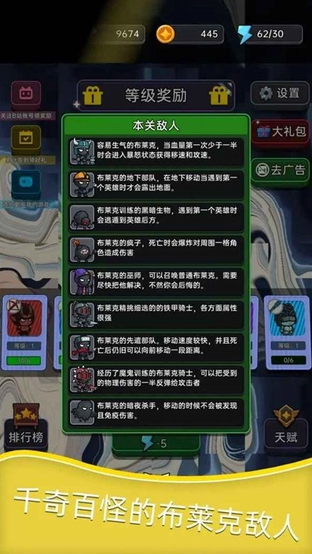 各种防御塔英雄收集,形成全新战斗效果和胜率。
