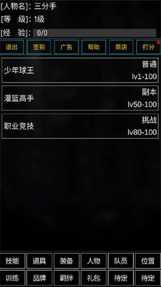 2、这是一款纯文字挂机游戏,玩家将从一个小村庄起步练习篮球,最终成长为NBA巨星。游戏中的球员设有等级划分,可通过参与比赛和进行训练来提升各项属性,而不同的养成路线则能塑造出风格迥异的球员。