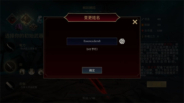 进入游戏后,首先挑选你的初始武器,接着创建游戏角色。