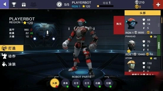 6、编辑机器人属于外在层面的升级,是那种直观上就很有冲击力的升级类型,主要涵盖打造、动作和涂装这三大类别。打造侧重于对机器人各个部位的机甲进行升级改造;动作设计能让机器人在比赛过程中展现出更炫酷的姿态,提升整体的观赏效果;涂装则是通过不同色彩的喷涂,让机器人外观更具帅气感。