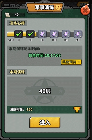 1、军事演练全天开放,每周日0点结算排行奖励。