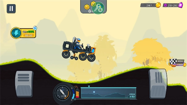 4、玩家能够在游戏内直接对各类爬坡赛车进行改装并使用,还可以为这些赛车配备多种装备道具,体验丰富多样的挑战模式。