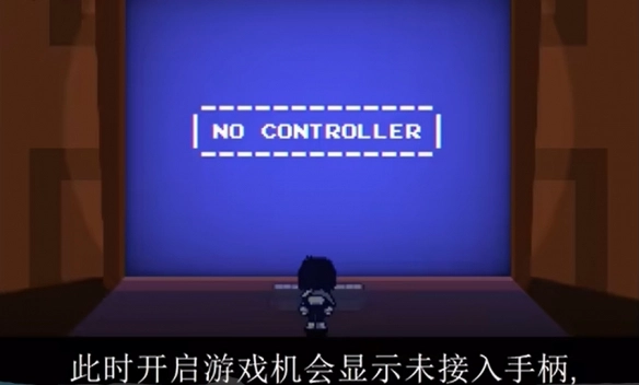 3、后台左侧的房间内放置着一台游戏机,不过当我们尝试启动游戏时,系统会提示未连接手柄。此时只需前往房间右侧,拾起地面上的手柄,就能正常开启游戏了。