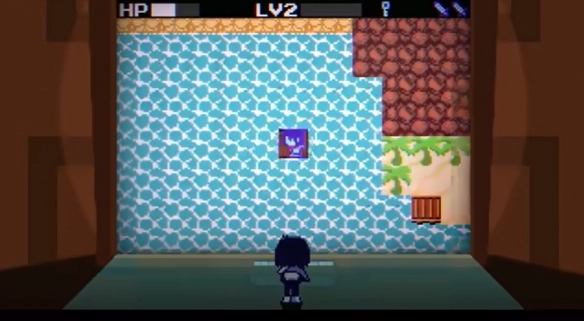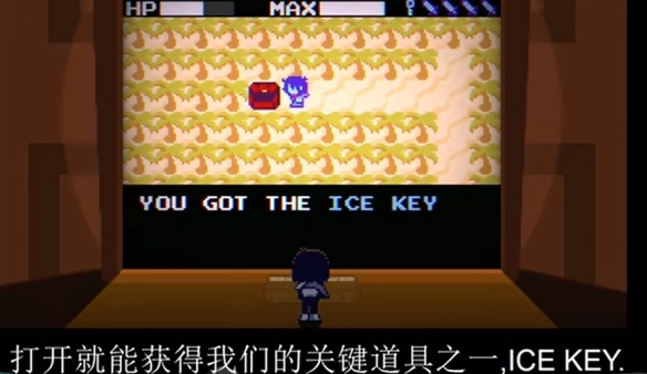6、看到白色地板后,找到带有游戏图标的门口,使用之前从红色宝箱中获得的道具将其打开。